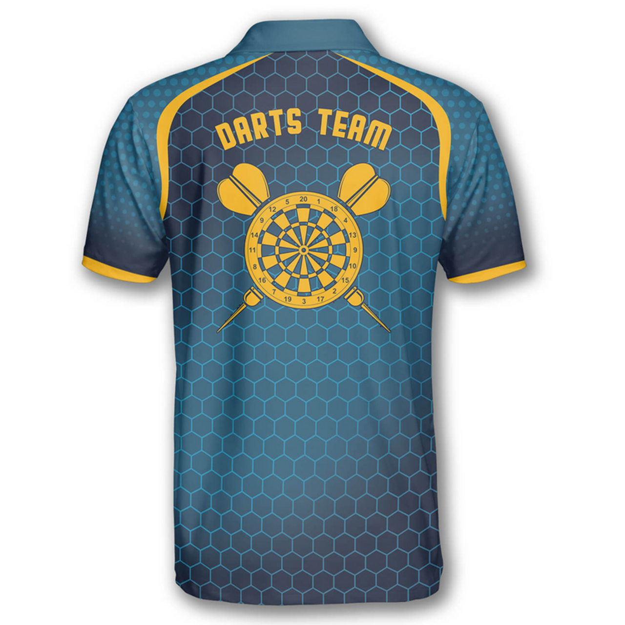 Custom Darts Honeycomb Pattern Yellow Blue Custom Polo Shirts for Men