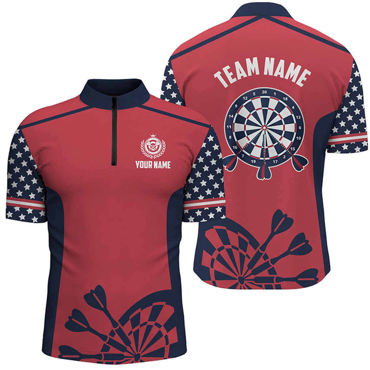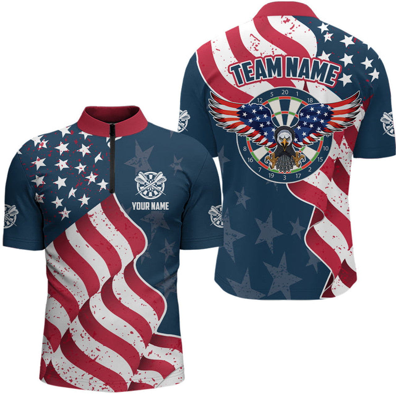 Custom Darts Pattern Waving American Flag White Quarter-Zip Shirt Patriotic Dart Jersey For Men