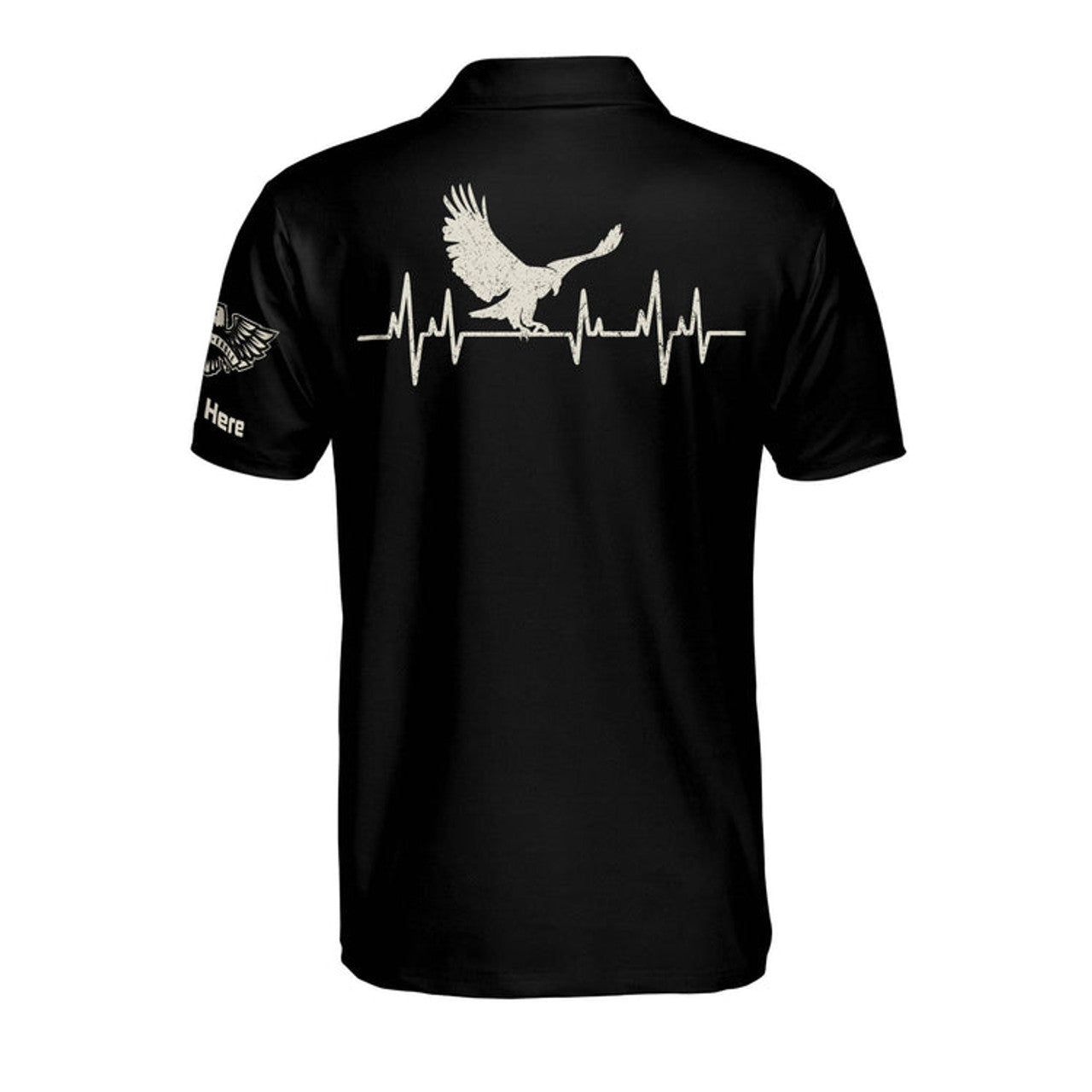 Custom Eagle American Black And White Heartbeat Polo Shirt, Personalized Independence Day Polo Shirt