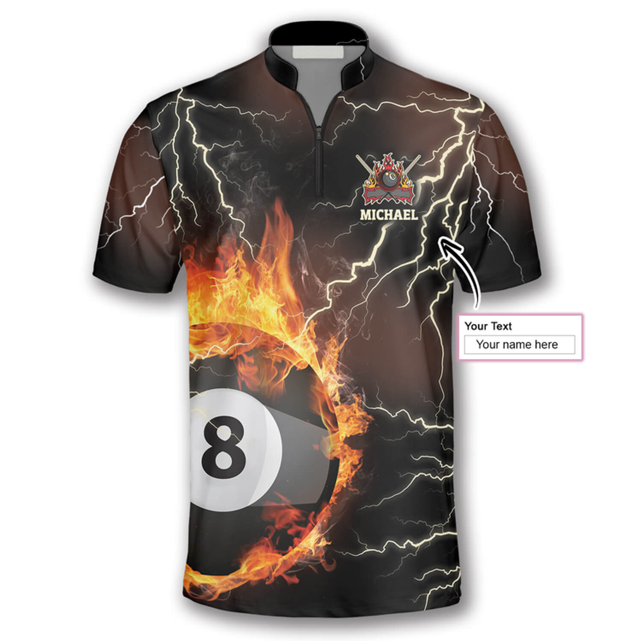 Custom Fire Flame Lightning Custom Billiard Jerseys for Men, Perfect Gift for Billiard Player