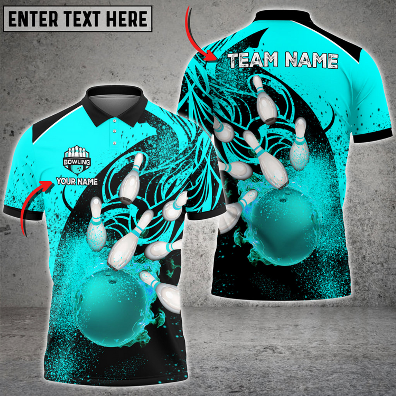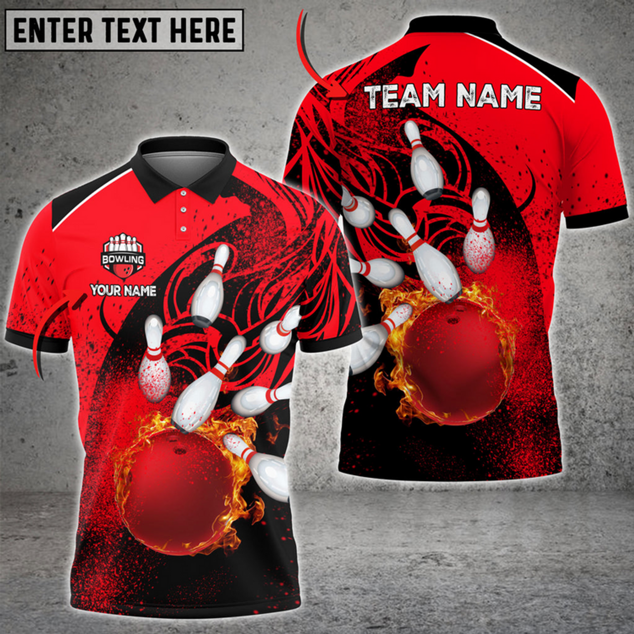 Custom Flame Pattern Bowling And Pins Multicolor Option Customized Name 3D Shirt, Gift For Bowler
