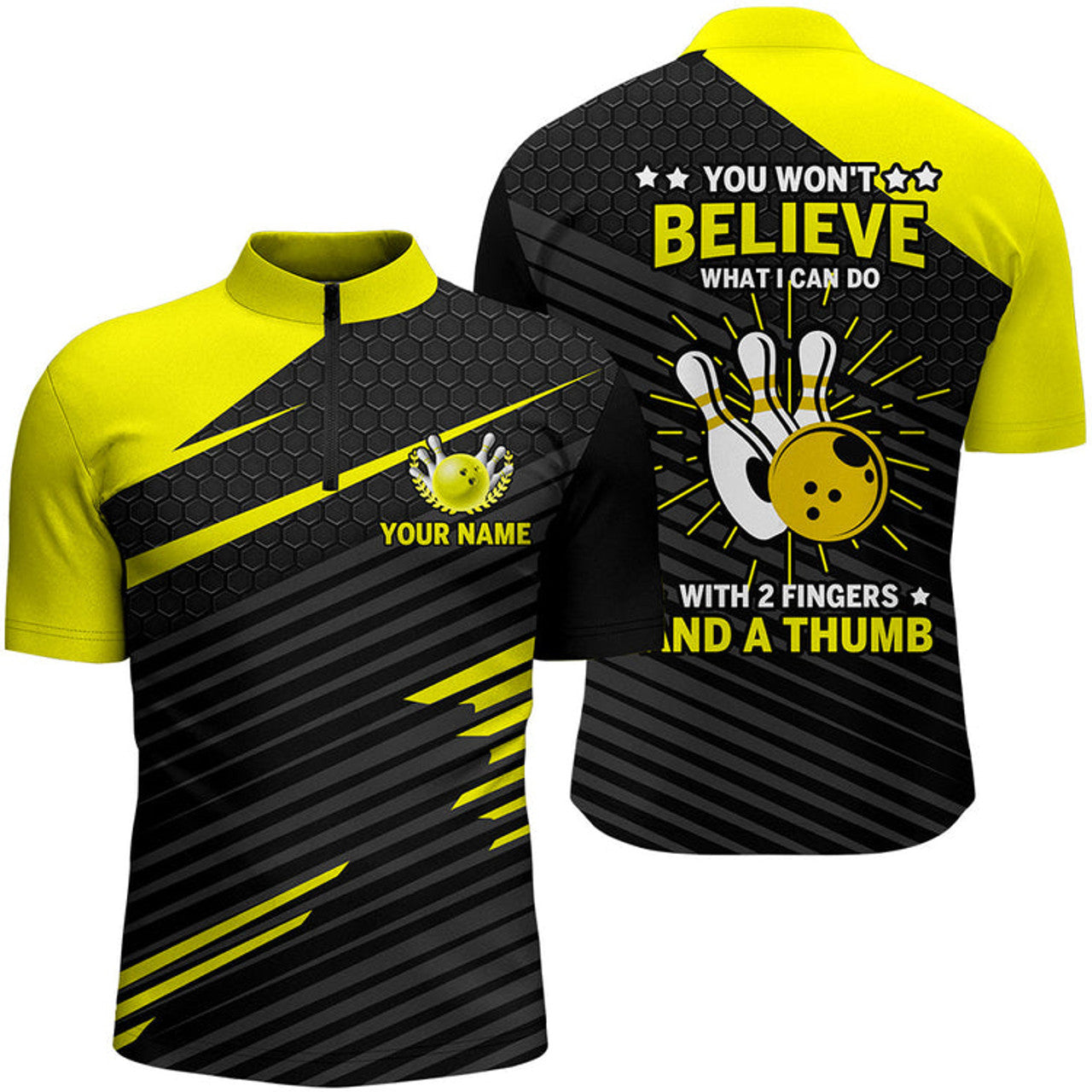 Custom Funny Bowling Shirt for Men Multi Color Custom Bowling Jersey Quarter-Zip 2 Fingers And A Thumb
