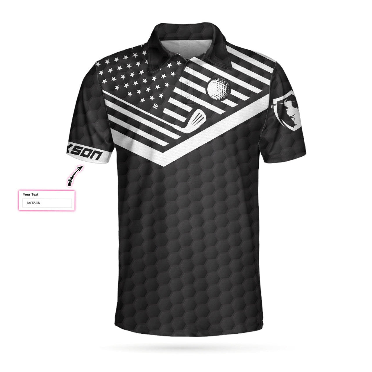 Custom Golf Ball And Golf Club Custom Polo Shirt, Personalized Black American Flag Polo Shirt, Best Golf Shirt For Men