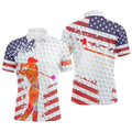 Custom Golf Men Polo Shirt - Custom Name American Flag White Golf Balls Skin Apparel - Personalized Gift For Golf Lover, Team, 4th July, Patriotic