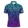 Custom Golf Men Polo Shirt - Custom Name Blue Purple Neon Leopard Pattern Apparel - Personalized Gift For Golf Lover, Team, Husband, Boyfriend, Men