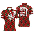 Custom Golf Men Polo Shirt - Custom Name Christmas Pattern Apparel - Personalized Gift For Golf Lover, Men, Team, Husband - Swing Swear Drink Repeat