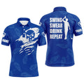 Custom Golf Men Polo Shirts, Swing Swear Drink Repeat, Custom Name Golf Clubs Pattern Blue Apparel - Personalized Gift For Men, Husband, Boyfriend, Lovers
