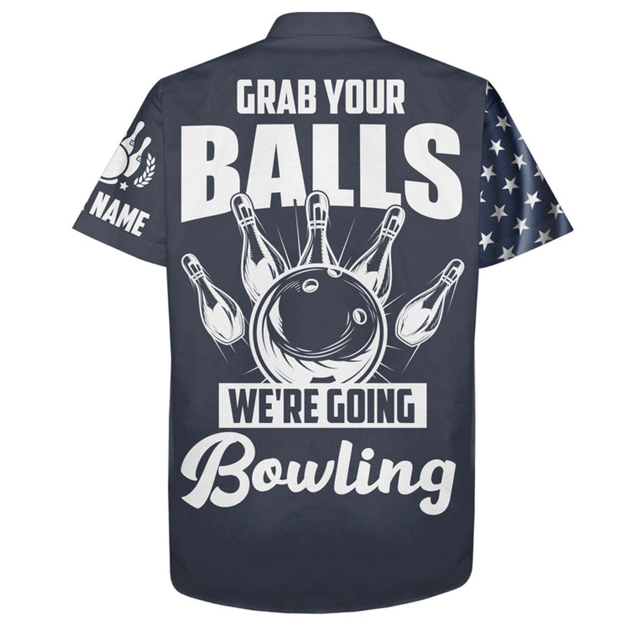 Custom Grab Your Balls We're Going Bowling Hawaiian Shirt Custom Bowling Men USA Bowling Shirt