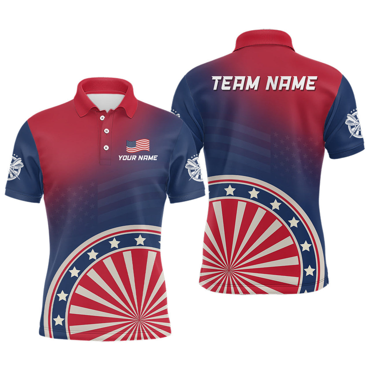 Custom Gradient American Flag Dartboard Mens Polo Shirts Custom Patriotic Dart Jerseys For Men
