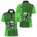 Custom Green and Black stripes Mens bowling polo, quarter zip shirts Custom Skull bowling Team Jerseys