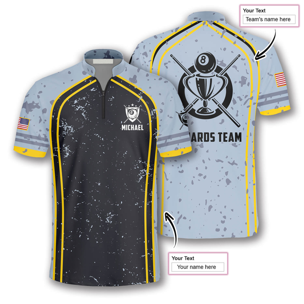 Custom Grey Black Grunge Style Custom Billiard Jerseys for Men, 8 Ball Billiard Shirt
