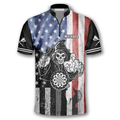 Custom Grim Reaper American Flag Custom Darts Jerseys for Men, Zipper Polo Shirt Dart Shirt, Skull Dart Shirt