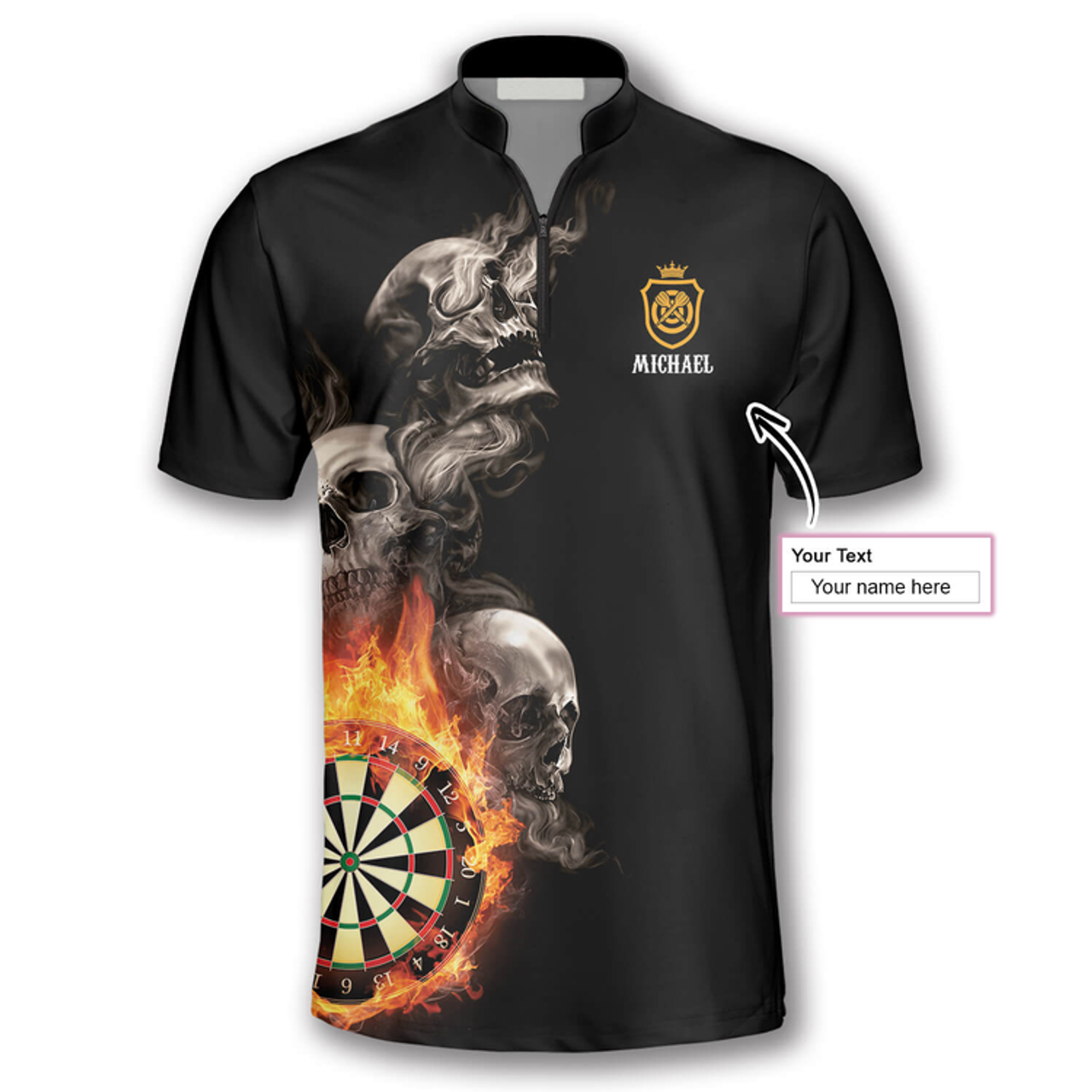 Custom Hello Darkness My Old Friend Custom Darts Jerseys for Men, Dart Shirt, Skull Zipper Polo Shirt