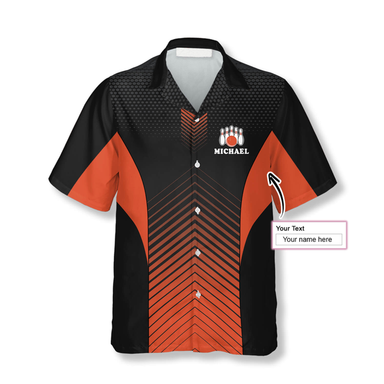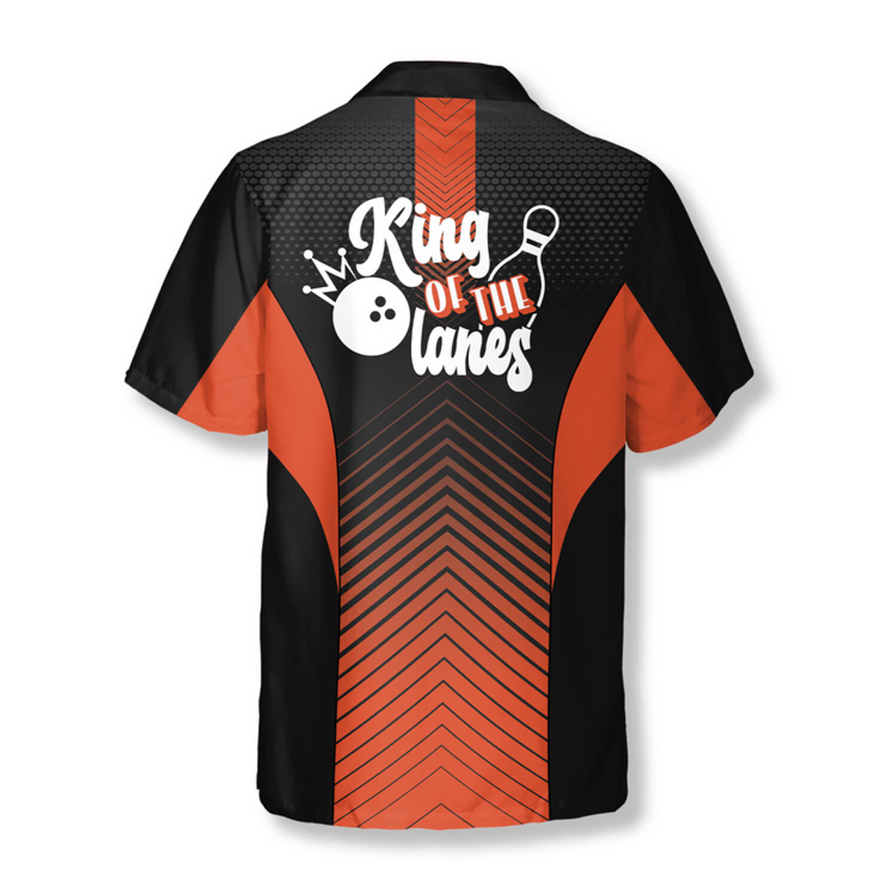 Custom King of the Lanes Orange Custom Bowling Hawaiian Shirt, Gift for Bowler, Personalized Bowling 3D Shirt