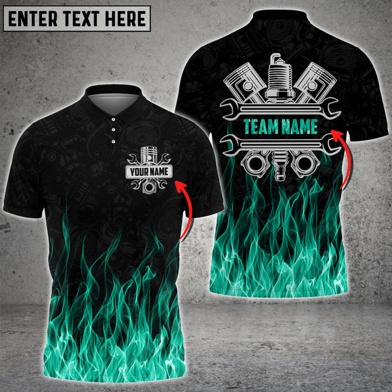 Custom Mechanic And Fire Custom Name Multi Color Printed 3D Polo Shirt, Gift for Men Dad