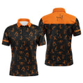 Custom Men golf polo upf shirts custom name funny golf pattern, black orange polo shirt golf outfit men