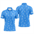 Custom Men golf polo upf shirts custom name funny golf pattern blue polo shirt best mens golf wear