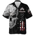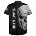 Custom Men Women Skull Hawaiian Bowling Shirt, Patriotic Custom Name Black Bowlers Jersey American Flag