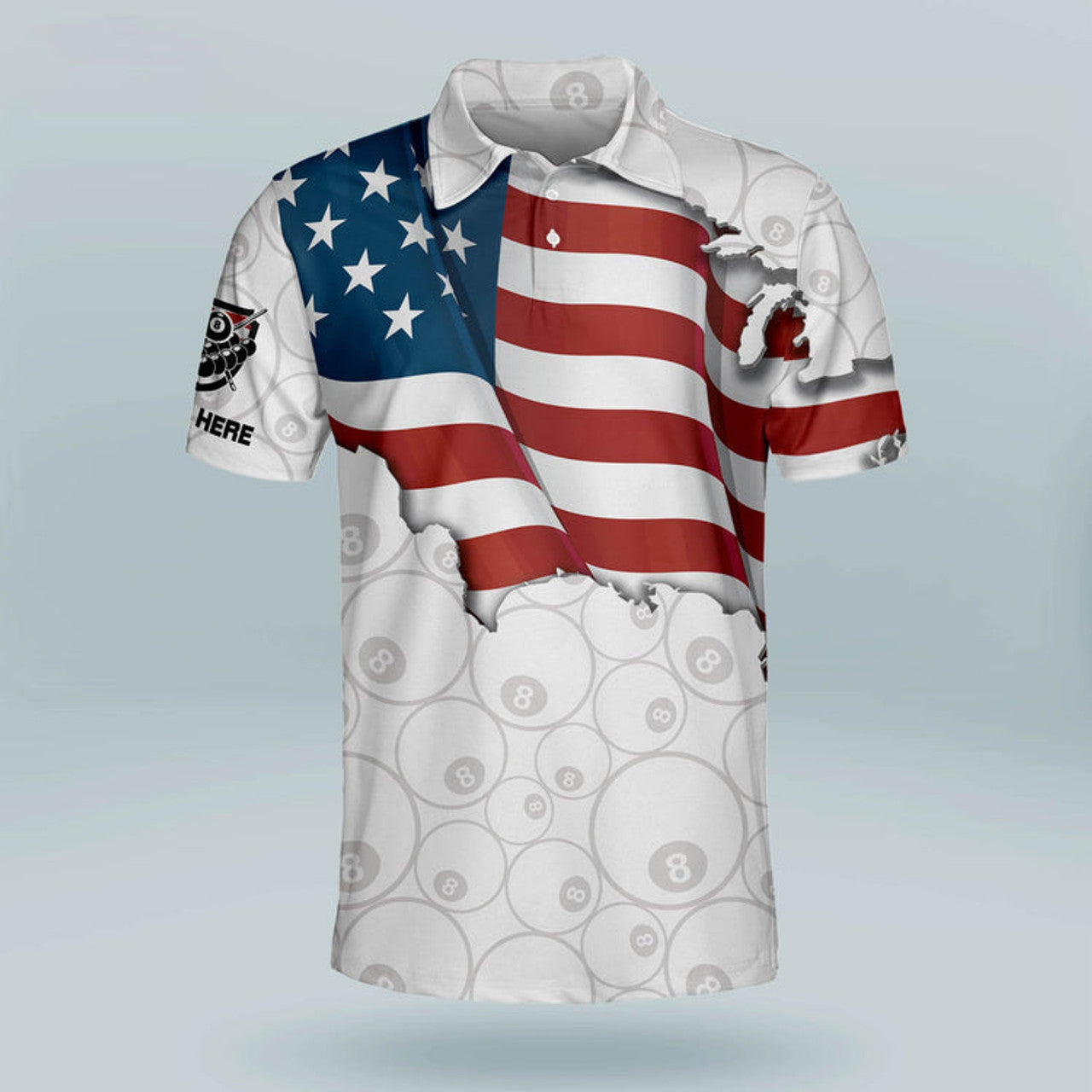 Custom Men's Billiard Dry Fit Short Sleeve Shirts, Eagle Shirt, Flag Billiard Polo Shirt
