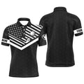 Custom Mens golf polo shirt custom name black and white American flag patriotic golf polo shirts for men
