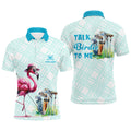 Custom Mens golf polo shirts custom pink flamingo blue pattern golf shirts talk birdie to me