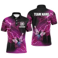 Custom Mens polo bowling shirts Custom pink lightning thunder Bowling Team Jersey, gift for team Bowlers