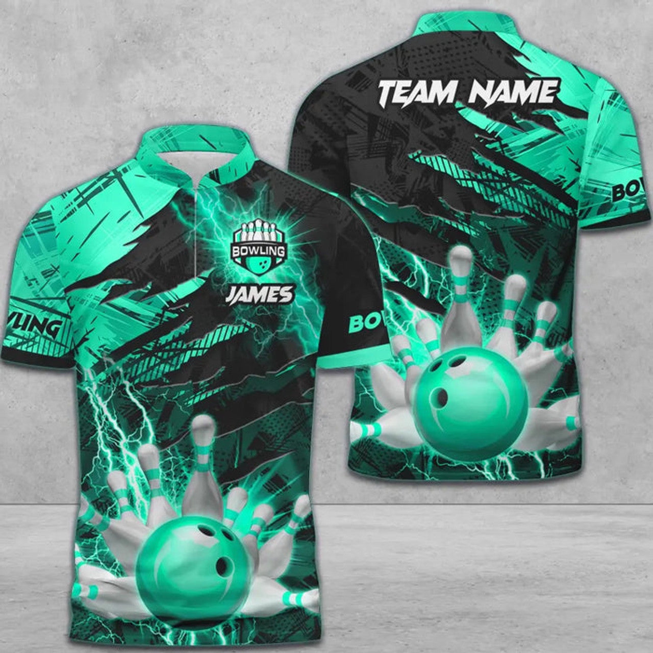 Custom Multicolor Bowling And Pins Thunder Break Multicolor Option Customized Name Zipper Polo Shirt