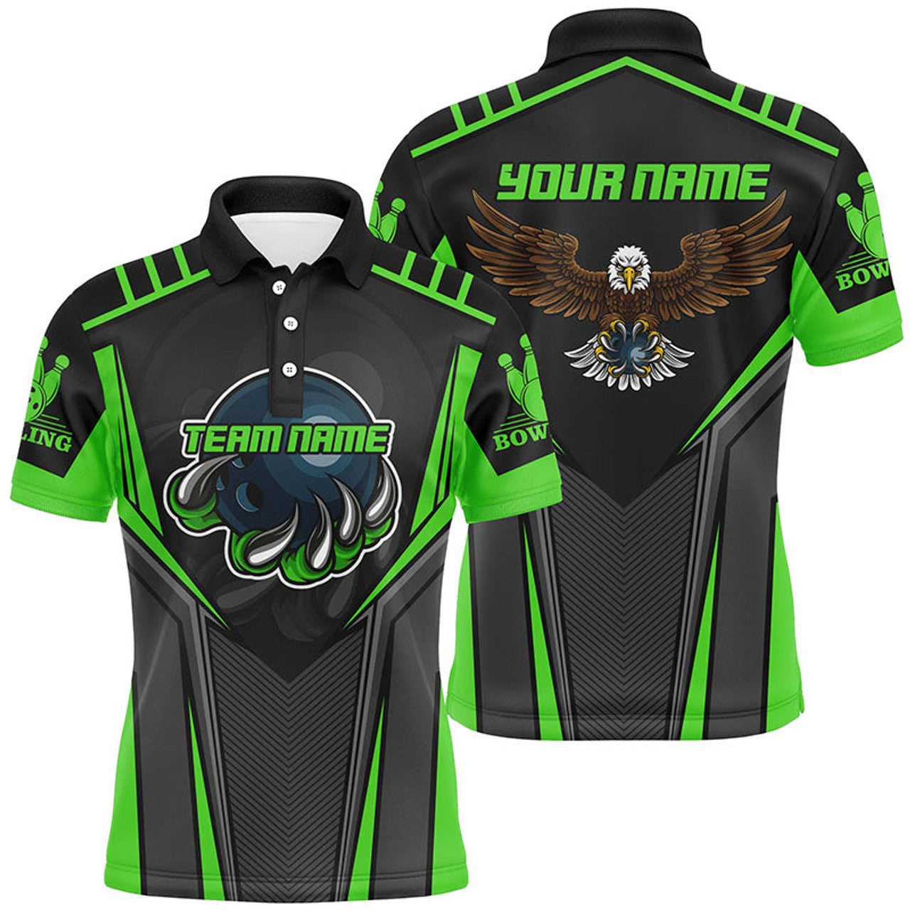 Custom name and team name Bowling polo shirts for Men, Eagle Men's Bowling Team Shirts | Green