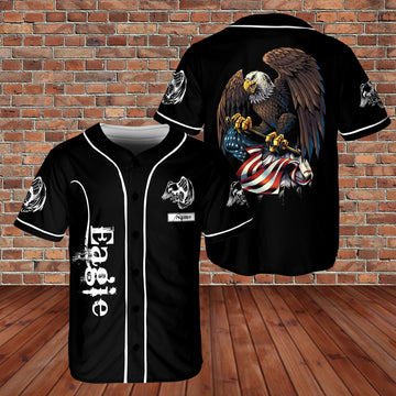 Custom Name Awesome Eagle America Flag 3D AOP Baseball Jersey Indenpend Veteran Days