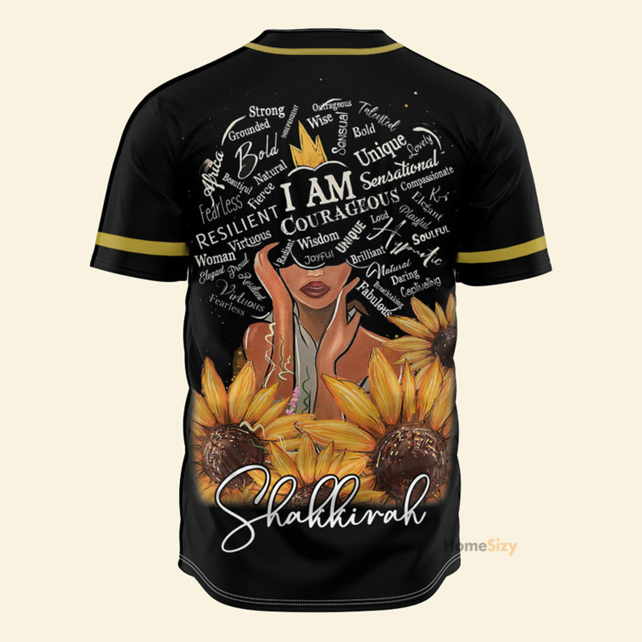 Custom Name Black Girl Magic Sunflower Juneteenth - Personalized Baseball Jersey