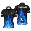 Custom Name Blue Flaming Billiard 3D Polo Shirts For Men Custom Billiard 10 Ball Pool For Team
