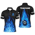 Custom Name Blue Flaming Billiard 3D Polo Shirts For Men Custom Billiard 8 Ball For Team TDM0290