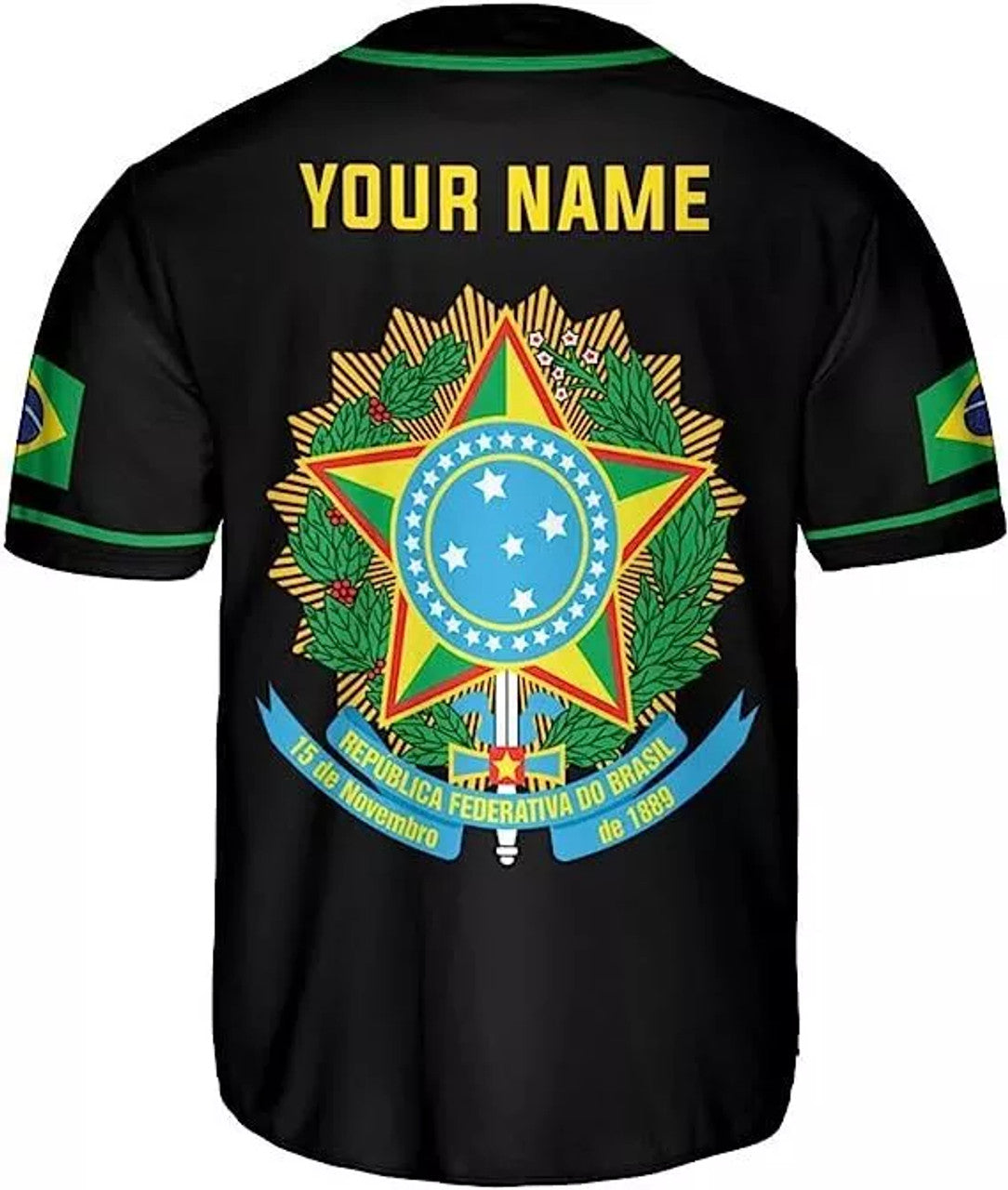 Custom Name Brazil Baseball Jersey Shirt, Brasil Brazilian Flag Bandera Bandeira