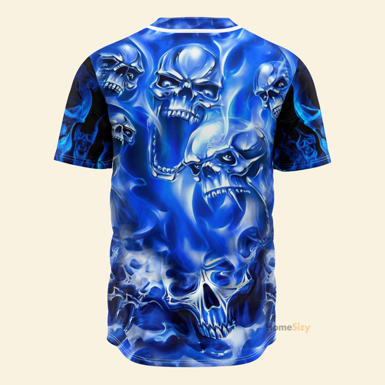 Custom Name Ghost Blue Flame Skull - Personalized Baseball Jersey