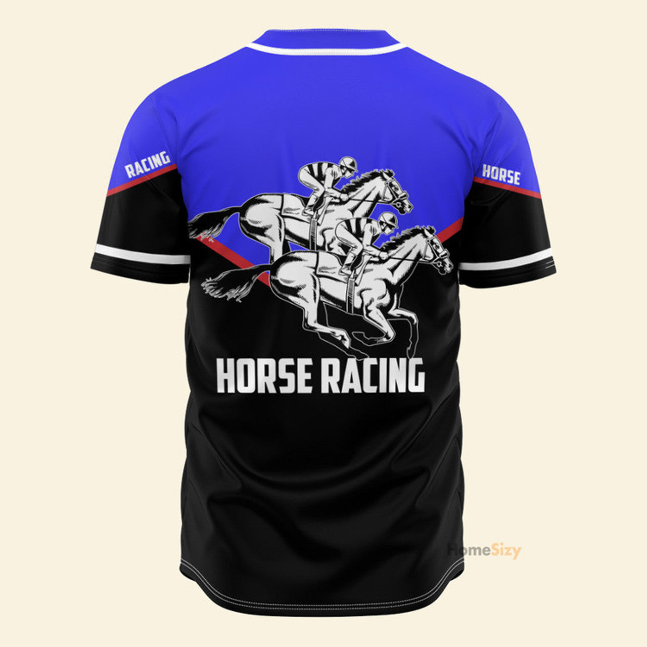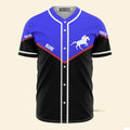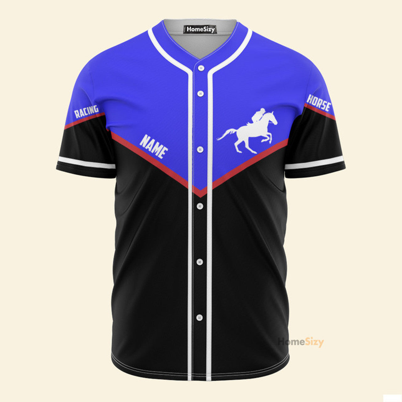 Custom Name Horse Racing Black And Blue - Personalized Baseball Jersey