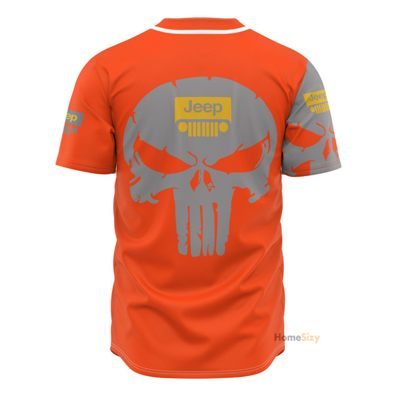 Custom Name Orange Jeep Skull - Personalized Baseball Jersey