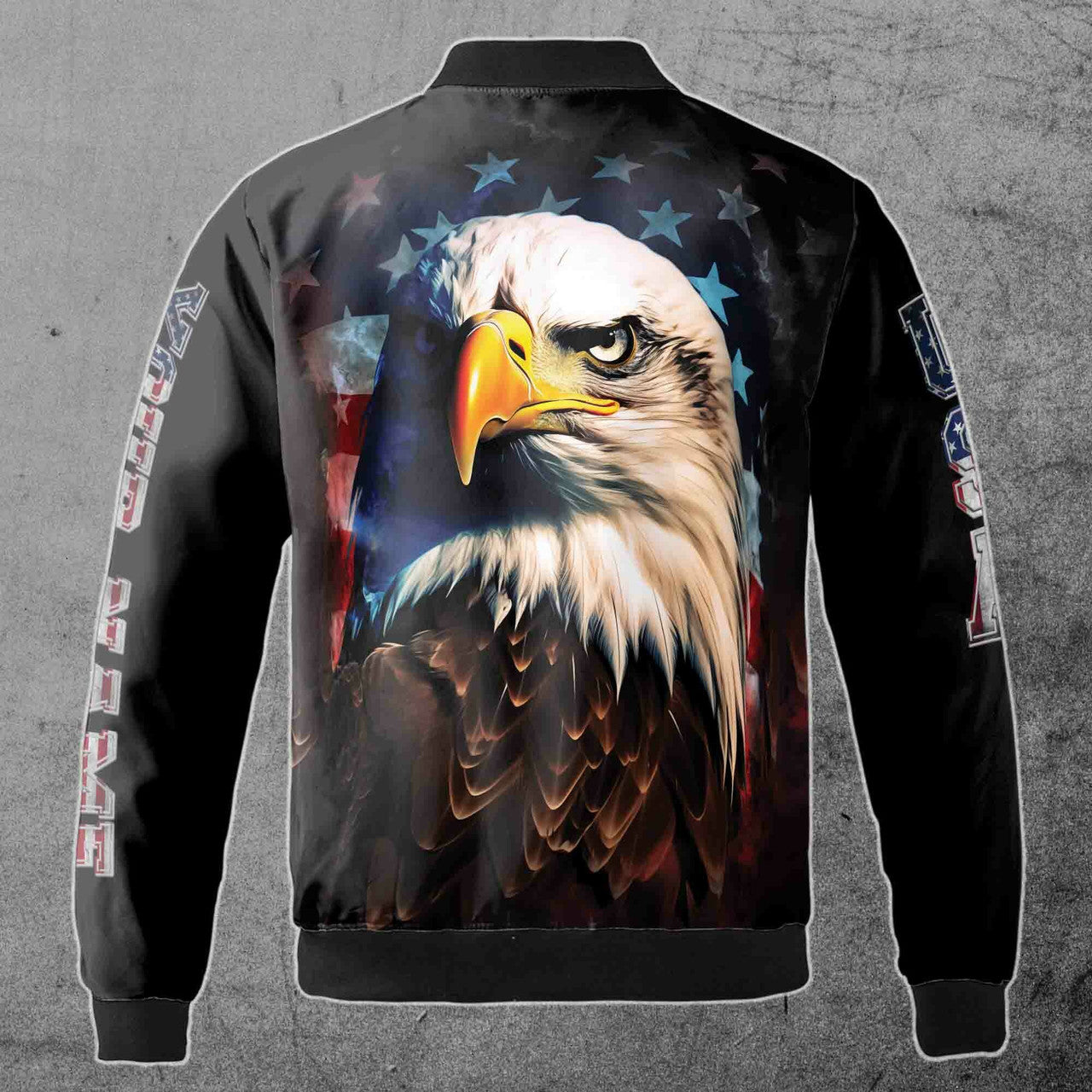 Custom Name Retro Grunge American Eagle Art, American Flag Patriotic Unisex Bomber Jacket S-5XL