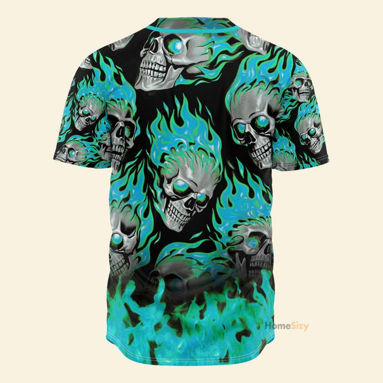Custom Name Skull Mint Fire - Personalized Baseball Jersey