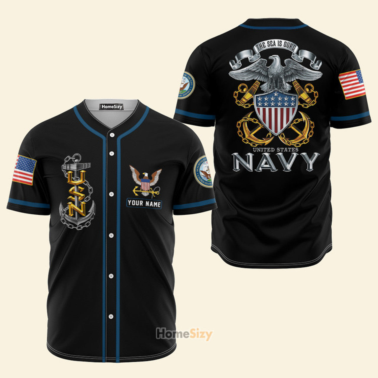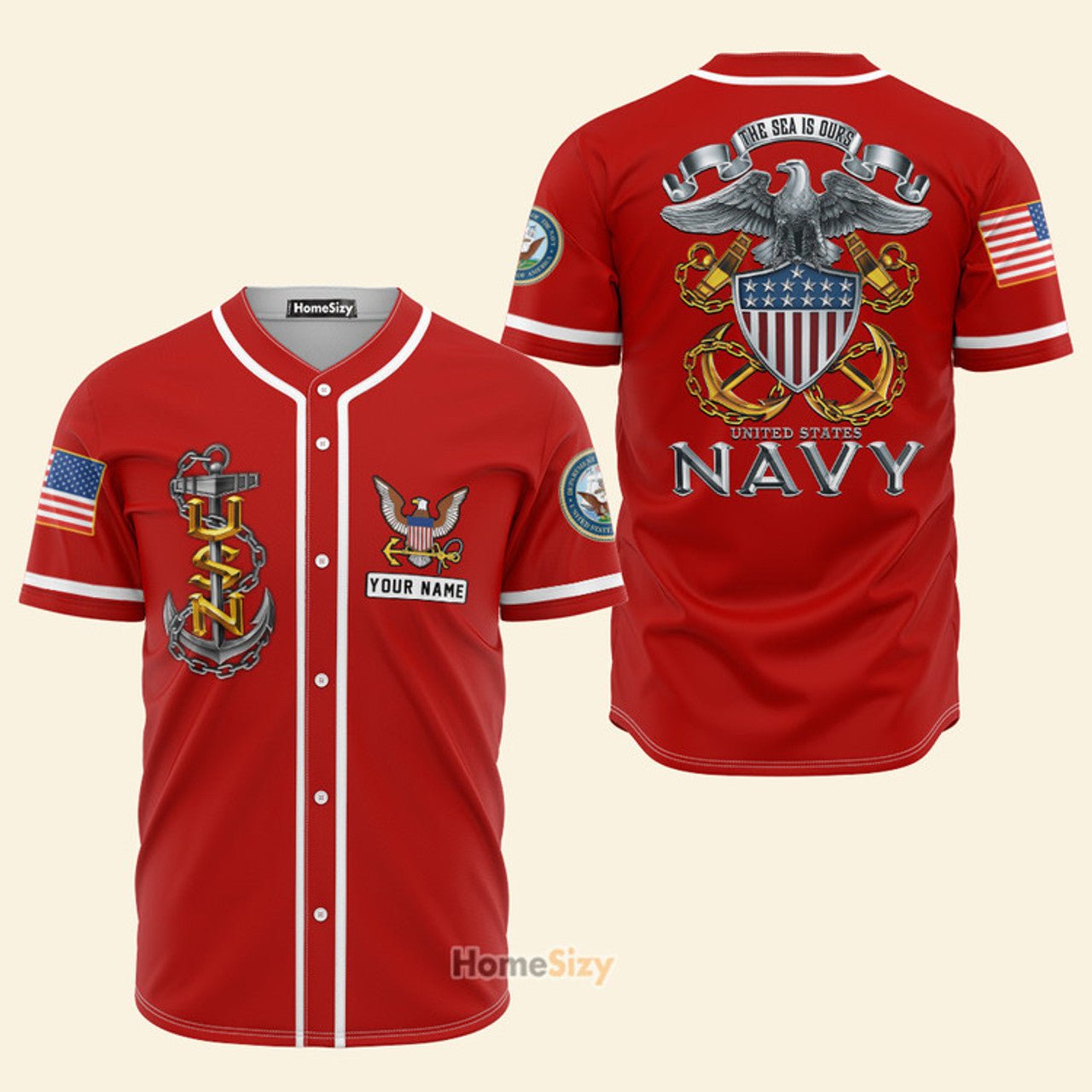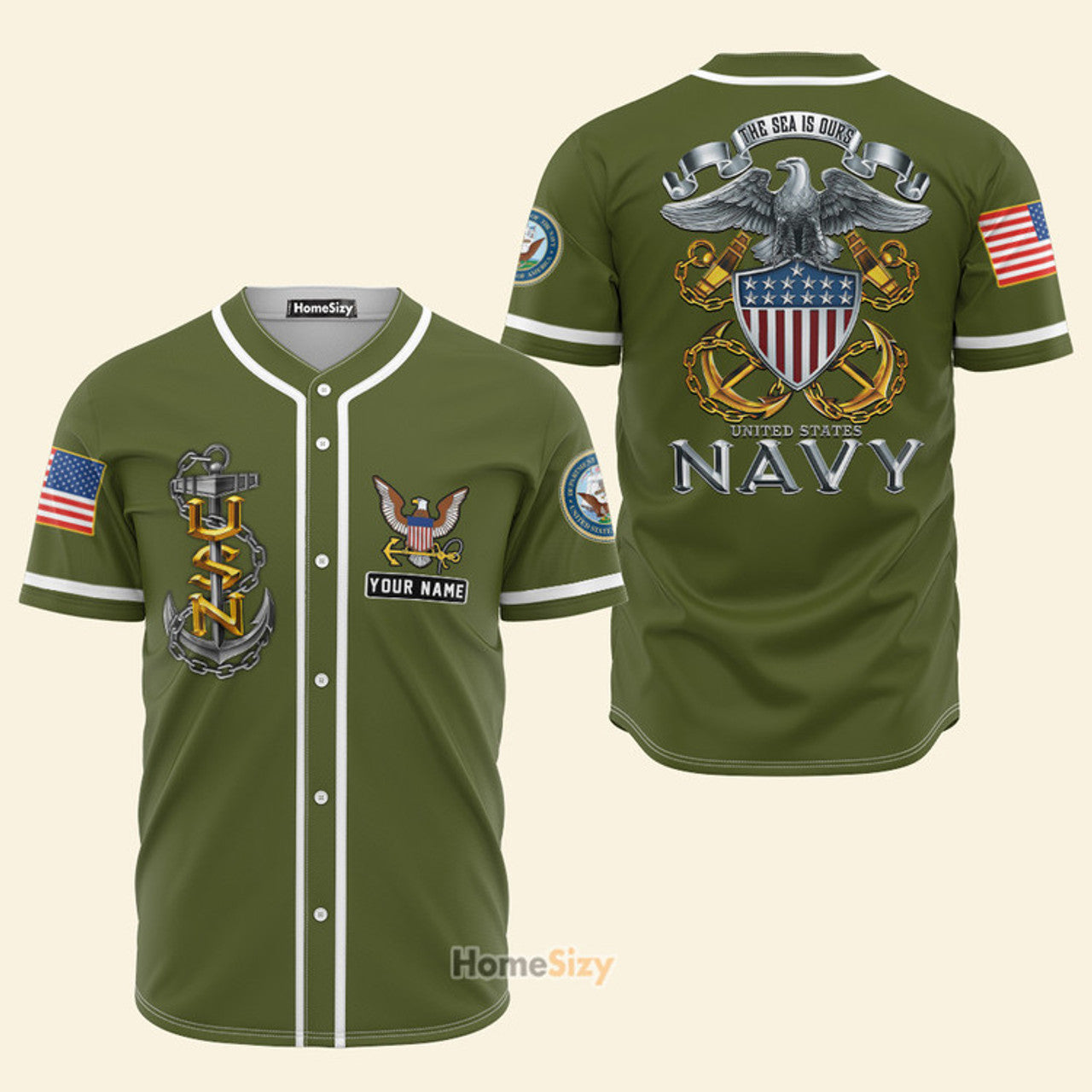 Custom Name US Navy Veteran Anchor - Personalized Baseball Jersey