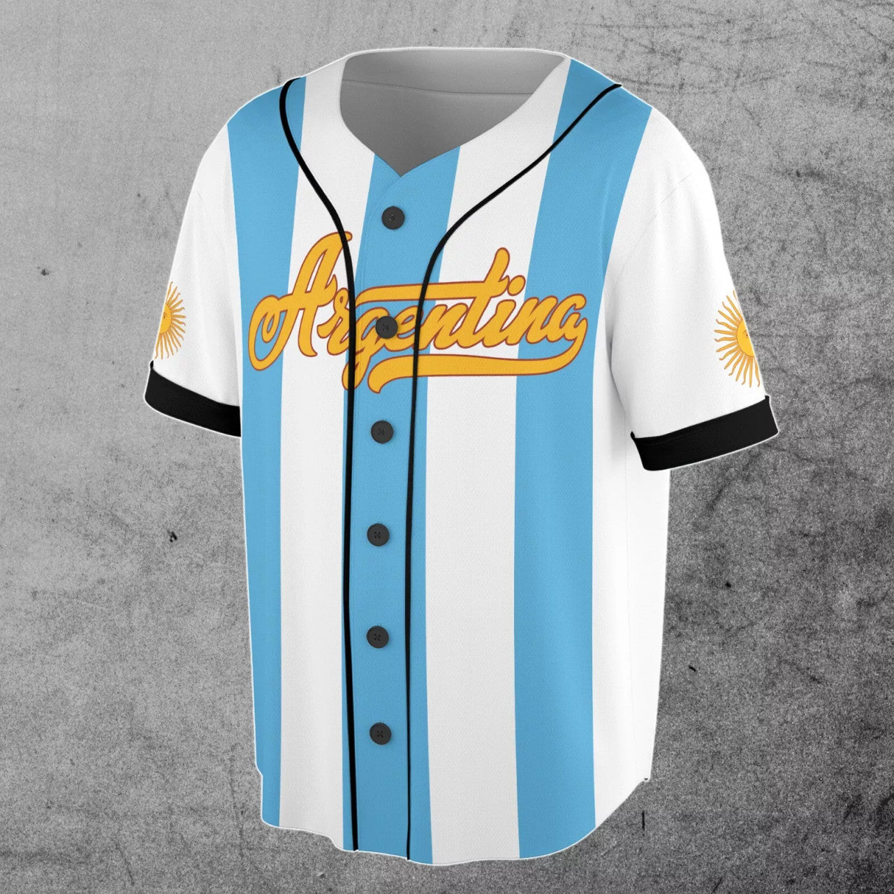 Custom Number Argentina Flag Coat of Arms Patriotic 3D Baseball Jersey Size S-5XL