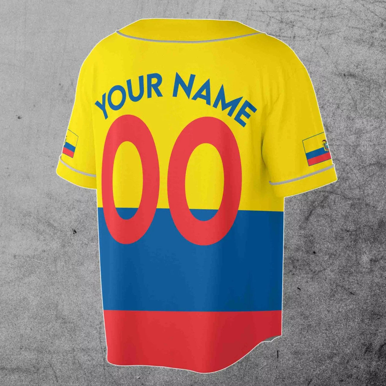 Custom Number Ecuador Flag Coat of Arms Patriotic 3D Baseball Jersey Size S-5XL