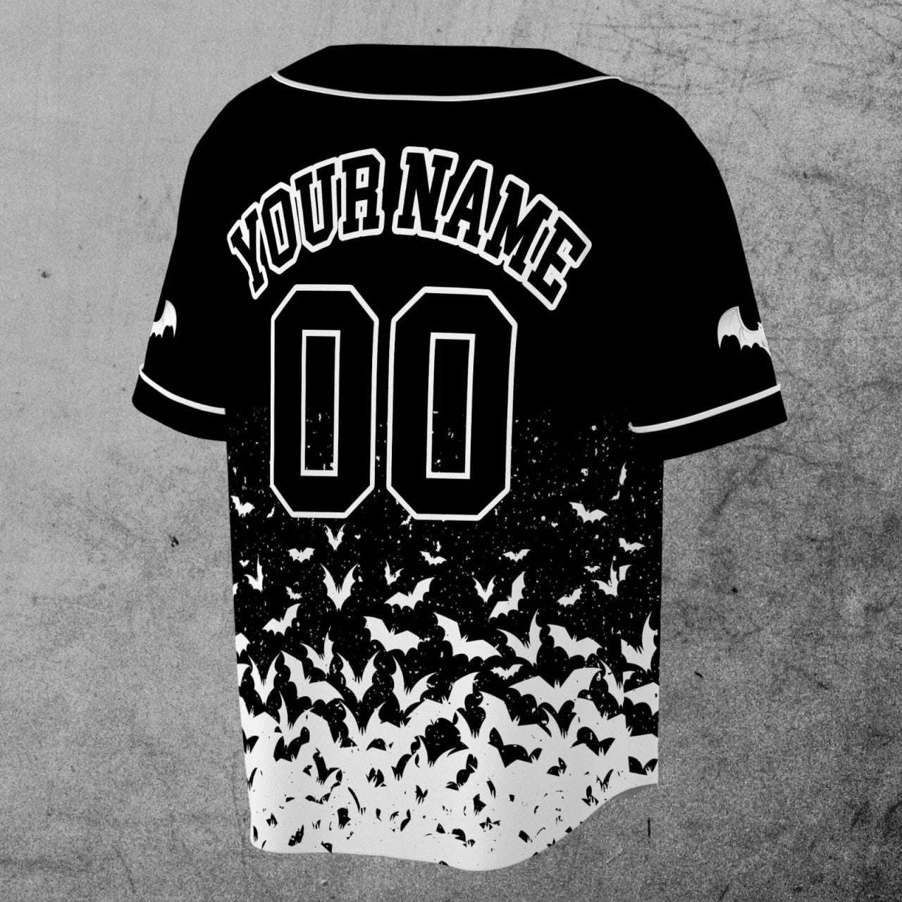 Custom Number Halloween Bat Pattern Gift 3D Baseball Jersey Size S-5XL