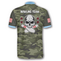 Custom Passionate Skull Camo Custom Bowling Jerseys for Men, Zipper Polo Shirt Bowling Shirt, Skull Zipper Polo Shirt
