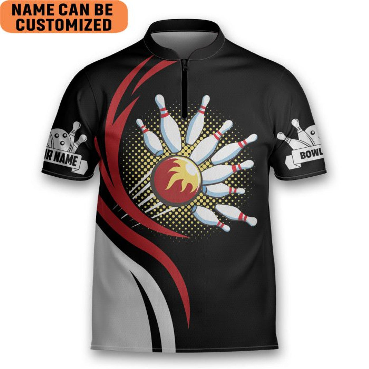 Custom Personalized 3D Bowling Fire For Bowling Team Player Uniform Bowling Jersey Zipper