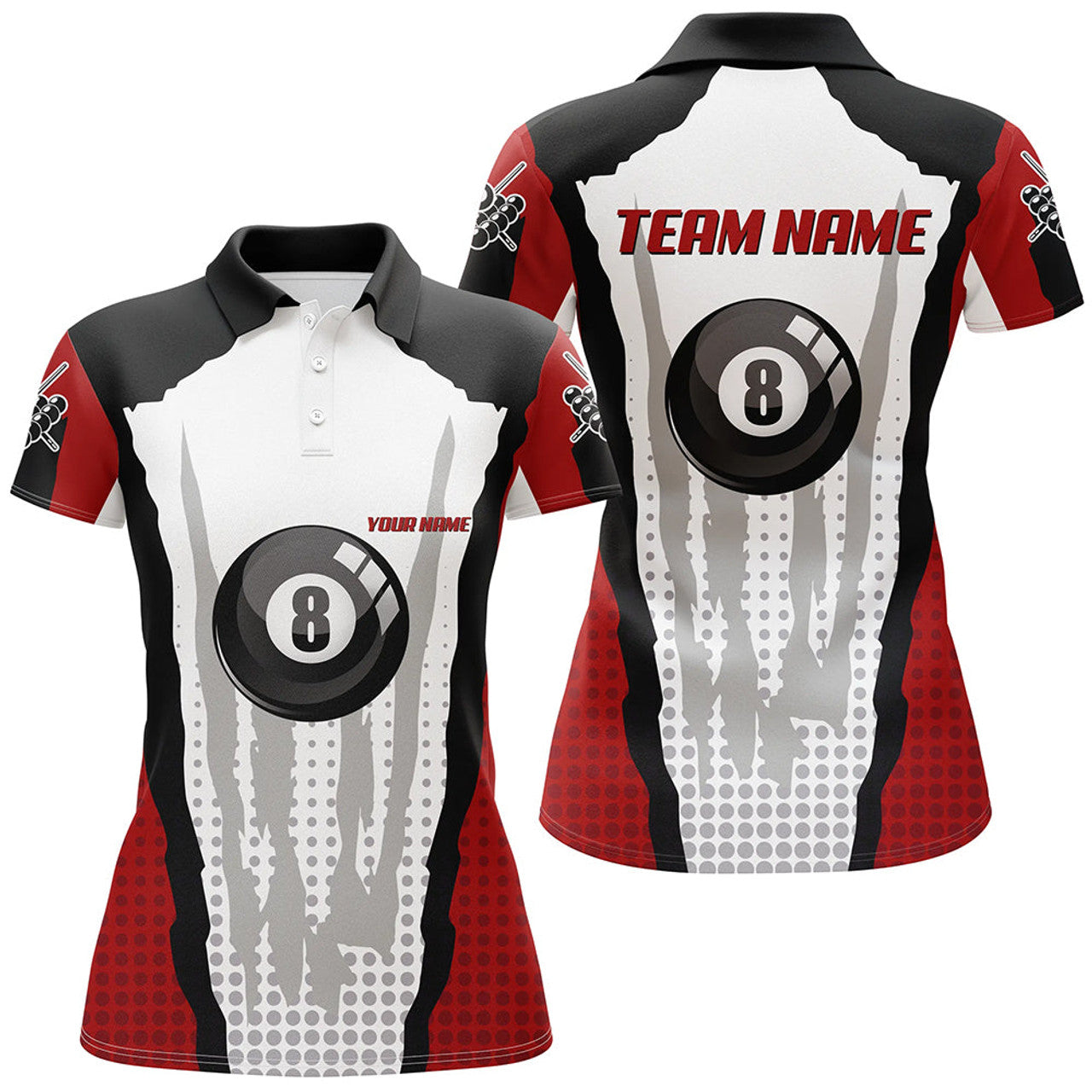 Custom Personalized 8 Ball Pool Red Billiard Polo Shirts For Women, Custom Billiard Team Shirt