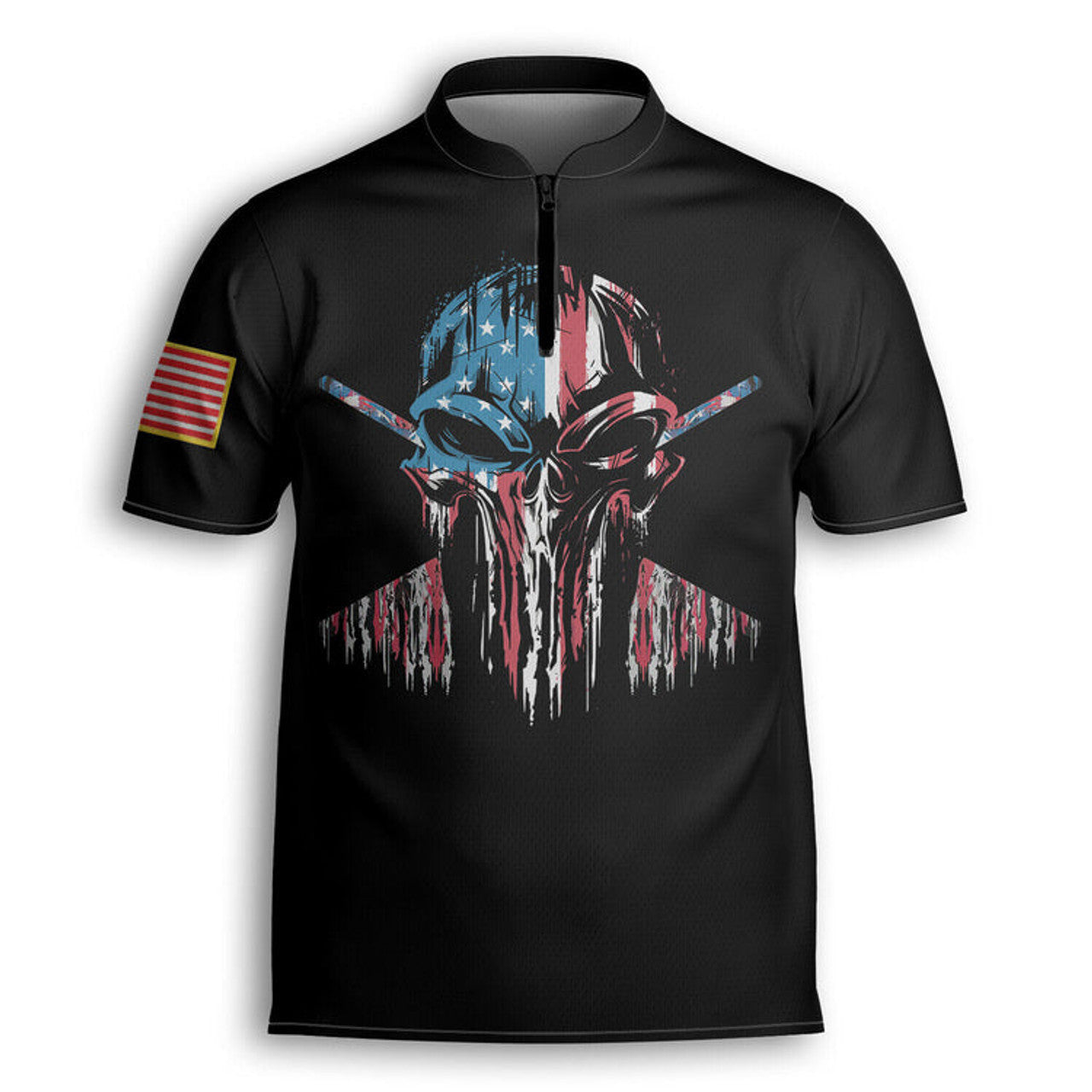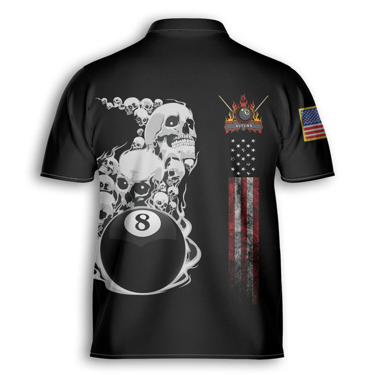 Custom Personalized America Flag Skull Billiard Player AOP Bowling Jersey Shirt Black, Idea Gift for Billiard Player