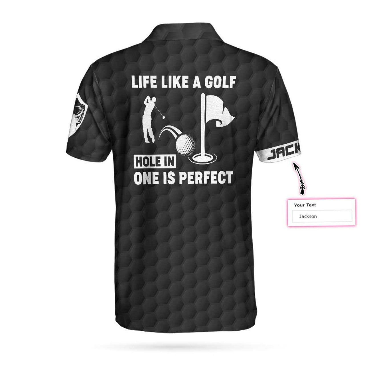 Custom Personalized Black America Flag Golf Ball Pattern Polo Shirt, Hole In One Is Perfect Custom Polo Shirt For Men, Best Gift For Golfers