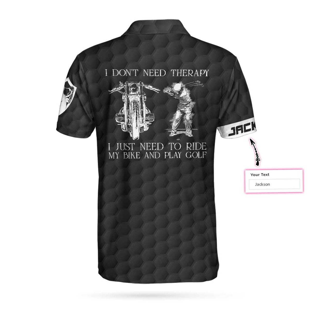 Custom Personalized Black American Flag Golf Ball Pattern Men Polo Shirt, Golf in Desert Custom Polo Shirt, Unique Male Golf Gift, I Don't Need Therapy I Just Need To Ride My Bike And Play Golf Shirt For Men