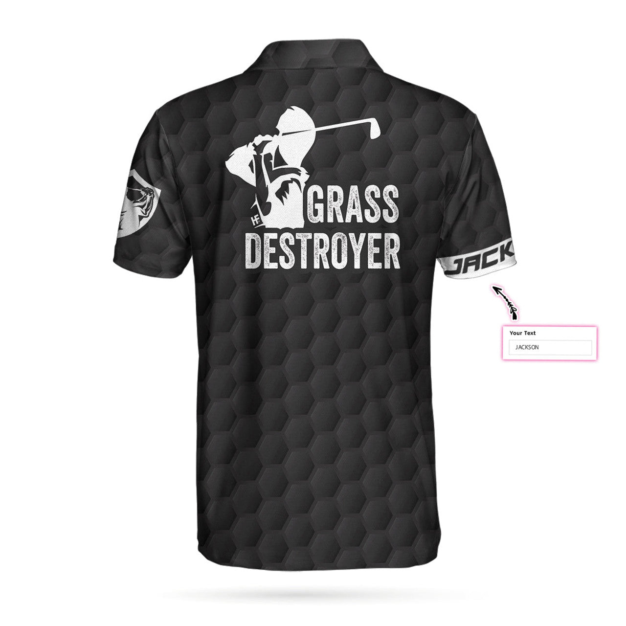 Custom Personalized Black Skull Golfing Men Polo Shirt, Grass Destroyer Custom Polo Shirt Design, Golf Gift Idea For Male