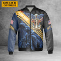 Custom Personalized Eagle Honor The Fallen Navy Veteran Fleece Bomber Jacket